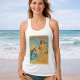 Dieser echte Strand ist wirklich salzig! Die freche, im Vintage-Stil inspirierte Pin-Up-Figur hält selbstbewusst die Angelrute, während ihr großer Fang, ein feuriger Hai, aus dem Wasser springt. Die Szene wird durch Palmen, einen Oldtimer und einen Rettungsschwimmerturm im Hintergrund vervollständigt. Eine keckere Variante der klassischen Retro-Plakat-Kunst, die dich zum Lachen bringen wird. Dieses lustige Tank-Top mit Rundhalsausschnitt ist perfekt für den Strand oder das tägliche Küstenleben.