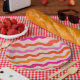 Retro Streifen Abstrakte Waves Rosa Orange Pappteller