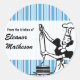 Une illustration vintage d'un boulanger contre un arrière - plan rayé bleu forme la base visuelle de ce mignon autocollant. Utilisez l'expression "De la cuisine de" ou faites-la vous-même et ajoutez votre nom (ou celui d'une autre personne). Inscrivez ci-dessous votre nom de plat. Disponible dans d'autres modèles et combinaisons de couleurs. Contactez-moi par l'intermédiaire de ce magasin si vous êtes intéressé par une combinaison de couleurs ou un arrière - plan différent.