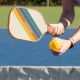 Erstellen Sie Ihr eigenes Retro-Streifen Monogramm Pickleball Paddel. Die abstrakten Vintagen Streifen Design und individuelle Name in einem klassischen Stil Typografie.