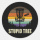 Retro Stupid Tree Disc Golf Funny Frisbee Golf Runder Aufkleber