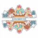 Ein personalisierter Vinyl-Aufkleber mit einer Reihe köstlich aussehender Kuchen mit Wirbel und Kirschen und leckeren Zuckerguss. Illustriert im Retro-Stil. Die Farben sind Retro-Grün, Rot, Blau und Creme.