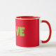 Mein digitales Original auf dieser Tasse zeigt ein Konfetti-Muster Herz-Schauspiel als den Buchstaben 'O' in der LIEBE. Das Retro-Erscheinungsbild der Buchstaben ist in einer komplementären, hellgrünen Farbtöne gestaltet und verleiht dieser einzigartigen Tasse einen künstlerischen Flair. Die Innenseite und der Griff dieser Tasse sind rot, Sie können jedoch die Farbe ändern, falls gewünscht. Das sind 15-Unzen-Tasse, die perfekte Größe für Ihre Zuhause-Braukaffee oder Tee - oder sogar heiße Schokolade! Es wäre ein großartiges Geschenk für den Valentinstag, und man kann Taschen Kaffee, Teebeutel oder heiße Schokolade hineinstecken. Eine andere Geschenkidee ist es, ein wenig Pflanze hineinzustecken, um es besonders für Ihren Liebsten zu machen.