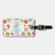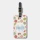 Ein Gepäckanhänger mit einem niedlichen Muster, in dem Donuts überall herumstolpern. Rosa, grün, braun und cremefarben verleihen diesem Design ein cooles Retro-Ambiente. Ein Kreis, der oben mit Ihrem Namen und dem Monogramm-Anfangsbuchstaben angeordnet ist.