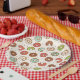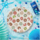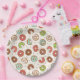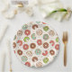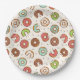 Teller mit einem niedlichen Muster mit Donuts, die überall herumstolpern. Rosa, grün, braun und cremefarben verleihen diesem Design ein cooles Retro-Ambiente.