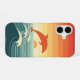 Minimalist dolphin leaping over waves in a soothing vintage style.
