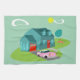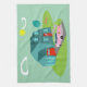 Dieses Retro Suburban House Kitchen Handtuchmuster weist eine typisch amerikanische Zuhause in einem typisch amerikanischen Viertel auf, ca. 1950. Eine aquamarine Zuhause mit einem Pfauenblauen Dach und türkisfarbenen Fenstern werden durch eine lebendige rote Eingangstür und Garagentür perfekt ausgeglichen. Ein klassisch rosa, in den 50er Jahren fertig montiertes Cabrio steht auf der malerischen Einfahrt. Kätzchen, Plastik, rosa Flamingos schauen direkt auf die Zuhause auf der Bomerangform des frisch gemähten grünen Grases, das auf einem Jadehintergrund ruht. Der gepflegte Rasen ist mit Kalkbäumen bepflanzt. Kidnierenförmige Wolken und ein gelber Sonnenaufgang lasse Ihnen, es ist nur ein weiterer glorreicher Tag in der modernen Vorstadt Mitte des Jahrhunderts.
