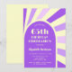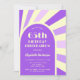 Lila und gelbe Retrosonnenbogenrahmen Typografie Geburtstagseinladung. Kann für jedes Alter angepasst werden!