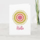 Dieses Design hat einen farbenfrohen Retro Sunburst in Oliven, Orange und Cranberry mit einem passenden whimsical Schriftart, der sagt: Hallo. Diese gefaltete Bankkarte ist ideal für Sprichwort, Freunde und Familie oder um eine kurze Notiz zu senden, um in Touch bleibe. Es ist als Standard-5 Zoll x 7 Zoll-Karte oder in einer kleineren Größe von 4 Zoll x 5,6 Zoll erhältlich und kann sowohl auf horizontale als auch auf vertikale Ausrichtung angewendet werden. Dieses Design kann für zusätzliche Anpassungen und Personalisierung kleiner skaliert werden. Die Innenseite dieser Karte ist leer verlassen, sodass es viel Platz gibt, um eine detaillierte Notiz zu schreiben, oder um sie an Ihre Bedürfnisse anzupassen. Sonnenaufgänge sind ein ikonisches Design-Motiv, das positive Energie und ein Gefühl der Erneuerung vermittelt. Dieses Sonnenburstdesign ist auch in weiteren Farbvarianten und weiteren Produkten erhältlich. Weitere Details finden Sie in unserem Shop. Optional sind auch weiße Umschläge erhältlich.