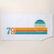 Retro vintage style sunset on extended horizontal stripe design with 79 (1979) typography in the style of the 1970s.
