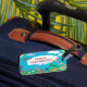 Beschreibung: Ein Vintages Strandsonnendesign mit Palmen - ideal für Nostalgie-Reisende und Sommerliebhaber.
