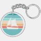 Design de coucher de soleil de style rétro des années 1980 dans un effet en détresse avec centre d'illustration de voilier (à l'avant et à l'arrière). Lignes transparentes et silhouette de voilier pour changer à une couleur arrière - plan de votre choix ou garder en blanc.