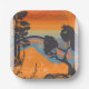 Retro Sunset Forest Landschaft Abstrakt Pappteller