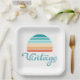 Retro Vintager 80er Sonnenuntergang mit Vintagem Skript unten in einem Not leidenden Effekt. Transparentes Design, sodass Farbhintergrund als weiß hinzugefügt oder behalten werden kann.
