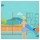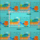 Jeder Tag kann ein Tag am Strand mit diesem Retro Surfer-Typ-Gewebe sein. Die Sechzigerjahre Art, unbedeutende KunstAusrüstungsbeschreibungen Sonne-geküsst, blond, Surfer-Typ ganz bereit, eine Welle zu fangen. Unser Sitz Surfer starrt heraus den Ozean durch die Türen des gleitenden Glases seines strandnahen Zuhause an. Er ist in seinem Aqua farbigen Wohnzimmer stehend. Wir können ein, die Aqua und ein Türkis, Steinwand und Mitte des Jahrhunderts, orange Stuhl sehen die modern sind. Auf der gegenüberliegenden Seite der Glastür können wir einen Patio sehen. Über dem hinaus gibt es einen goldenen, sandigen Strand, beeinflussende eine Palme, ein Funkeln, einen Pfaublauozean und einen Aquahimmel. Im Abstand können wir eine aquamarine vulkanische Insel sehen, die vorläufig schlafend ist. Surfer-Typ hält ein blaues Surfbrett und ein tragendes Blau, tiki gemusterte Brettkurzschlüsse. Fangen Sie einige Wellen und teilen Sie irgendeine Liebe mit diesem kitschy Sommerentwurf!