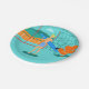 Jeder Tag kann ein Tag am Strand mit diesem Retro Surfer-Typ-Papier-Teller sein. Die Sechzigerjahre Art, unbedeutende KunstAusrüstungsbeschreibungen Sonne-geküsst, blond, Surfer-Typ ganz bereit, eine Welle zu fangen. Unser Sitz Surfer starrt heraus den Ozean durch die Türen des gleitenden Glases seines strandnahen Zuhause an. Er ist in seinem Aqua farbigen Wohnzimmer stehend. Wir können ein, die Aqua und ein Türkis, Steinwand und Mitte des Jahrhunderts, orange Stuhl sehen die modern sind. Auf der gegenüberliegenden Seite der Glastür können wir einen Patio sehen. Über dem hinaus gibt es einen goldenen, sandigen Strand, beeinflussende eine Palme, ein Funkeln, einen Pfaublauozean und einen Aquahimmel. Im Abstand können wir eine aquamarine vulkanische Insel sehen, die vorläufig schlafend ist. Surfer-Typ hält ein blaues Surfbrett und ein tragendes Blau, tiki gemusterte Brettkurzschlüsse. Fangen Sie einige Wellen und teilen Sie irgendeine Liebe mit diesem kitschy Sommerentwurf!