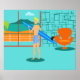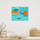 Mit diesem Retro Surfer Typ Poster kann jeder Tag am Strand sein. Das minimalistische Design der 1960er Jahre besticht durch einen sonnengeküssten, blonden, surfer Typ, der alle bereit ist, eine Welle zu fangen. Unser passender Surfer blickt durch die Glasschiebetüren seiner Strandpromenade-Zuhause auf das Meer hinaus. Er ist in seinem aquafarbenen Wohnzimmer stehend. Wir können ein Aqua und Türkis sehen, Steinmauer und Mitte des Jahrhunderts modernen, orangefarbenen Stuhl. Auf der gegenüberliegenden Seite der Glastür sieht man einen Innenhof. Darüber hinaus gibt es einen goldenen Sandstrand, eine schwebende Palme, einen glitzernden, pfauenblauen Ozean und einen Wasserhimmel. In der Ferne sehen wir eine aquamarine Vulkaninsel, die vorerst ruhend ist. Surfer Typ hält ein blaues Surfbrett und trägt blaue, tiki gemusterte Brettshorts. Fang ein paar Wellen und teile Liebe mit diesem kitschigen Sommerdesign!