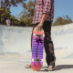 Horizontale Streifen in tropischen Farben, die von warmen Gelb zu schönen lila, mit der Silhouette einer anmutigen Palme, schattet ein Fab-Skateboard!