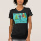 Ce rétro T-shirt de couples de bande dessinée de vacances vous mettra dans l'esprit de vacances. Les caractéristiques de conception un arrière - plan de turquoise avec des briques turquoises et un vert olive, cheminée de cône. Il y a une sarcelle d'hiver, horloge murale de starburst et une lampe pendante à deux étages aux nuances de jaune, du bleu et du noir. Un arbre de Noël vert est orné avec une étoile jaune et des ornements de sarcelle d'hiver. Avant et centre, il y a un homme d'affaires distingué, de martini-swilling dans un costume bleu et une cravate orange. À son côté, sa bombe blonde d'une épouse de trophée utilise une robe rouge d'agitation et un casquette de Père Noël tout en tenant un plateau des martini. Sous l'image, deux starbursts vintages entourent les mots, "bonnes fêtes." le Fa-La-La-Di-DA !
