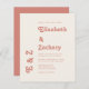 Diese moderne Retro-Hochzeitseinladung mit Terrakotta-Text auf weißem Hintergrund. Fügen Sie die Namen und Monogramm-Initialen der Braut und Bräutigam in stilvollem Retro-Display Typografie und die Details in sans Serif Schriftart. Die Rückseite ist ein passender Schatten aus massivem Terrakotta. HINWEIS: Umschläge sind nicht automatisch in diese Einladungen mit dem Budget eingeschlossen. Bitte denken Sie daran, die Option "weiße Umschläge" zu wählen!