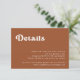 Hier ist eine Retro Hochzeit Details Karte Design können Sie für Ihre eigene Hochzeit verwenden. Diese verwendet eine quadratische Karte und eine helle Tinte, um ein schönes, sauberes Design zu schaffen.