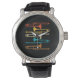 Uhr, Vintage Männeruhr mit schwarzem Lederarmband