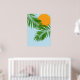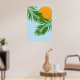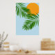 Dieses Poster zeichnet sich durch ein elegantes minimalistisches Design mit einer tropischen Sonne hinter Palmen Blätter auf blauem Himmelshintergrund aus.