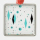 Dieser ist- Retro Türkis-Diamant-und Sternexplosion-Weihnachtsverzierung ein neues Nehmen auf einer Vintagen Art. Sie kennzeichnet die kitschy, schwarzen Sternexplosionen auf Türkispolkapunkten, Umgeben geometrische, des Türkises und des schwarzen Diamanten Formen. Fertigen Sie die Hintergrundfarbe auf diesem modernen Produkt der Mitte des Jahrhunderts, wenn Sie Gefühl trauend sind, besonders an oder verlassen Sie ihm Weiß, wenn Sie überwunden werden, ist mehr Ihre Art. Sie sind sicher, unsere Ehrerbietung zu den fünfziger Jahren zu genießen. Kaufen Sie dieses heute und seien Sie die coolste Katze auf Ihrem Block.