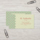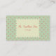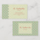 Un carte de visite générique polyvalent comportant un rétro arrière - plan vert avec le petit pois de couleur de melon. Section pure à de bonnes caractéristiques un bord de zigzag. Texte de melon. Caractéristiques de bord opposé assortissant l'arrière - plan. Personnalisez avec votre nom et titre à l'intérieur de rectangle pur de zigzag. Articles assortis Look for chez Paperie de Jill.