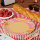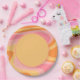 Retro Vibe Abstrakt Swirl 60er 70er Rosa und Gelb Pappteller