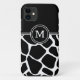 Holen Sie sich diese rustikale Farm suchen Sie Ihr Telefon mit einem schwarz-weißen Kuh verstecken Tierprint Muster. Dieses einzigartige Design hat einen runden Retro-Look, der Ihren Monogramm-Initial umgibt, und einen soliden schwarzen Oberteil, um einen stilvollen Look zu schaffen. Ob Sie in der Stadt oder in einem ländlichen Gebiet leben, dieses Telefon macht eine lustige Mode-Aussage.