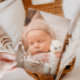 Retro und minimalistische Geburtsankündigung mit Text, der "danke" in fett Wirblen Schriftart mit Sternen als Overlay auf Ihrem Foto sagt.