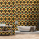 Dieses Retro-Vintage Art-Déco-Muster zeigt eine atemberaubende Kombination aus gewagten geometrischen Formen und erdigen Farbtönen, die Orange-, Grün- und Brauntöne einschließen. Das symmetrische Design zeichne Inspiration aus der modernen Ästhetik und der Ästhetik im 70er-Stil der Mitte des Jahrhunderts und bringt eine Touch Vintager Eleganz in jeden Raum. Dieses abstrakte Interieur ist perfekt für die Liebhaber von Retro-Dekoration und Vintag inspiriert Kunstwerken geeignet und bietet ein stilvolles und elegantes Ambiente, das sowohl das moderne als auch das klassische Interieur ergänzt. Dieses Design eignet sich ideal als Tapete, Stoff oder Dekorationskunst und verleiht jedem Raum einen nostalgischen und zeitlosen Flair, der perfekt dazu geeignet ist, eine Touch Retro-Chic hinzuzufügen.