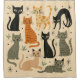 This playful illustration features nine uniquely styled cats arranged in a clean, grid-like composition. Each cat has its own personality, expressed through bold shapes, expressive eyes, and a variety of colors and patterns — from stripes and spots to sleek solids. Surrounding decorative elements like starbursts, dots, and leafy accents add movement and charm, giving the piece a lively, whimsical feel. The warm beige background ties everything together, making the artwork perfect for cat lovers, modern decor, or anyone who enjoys cheerful, graphic-style art.