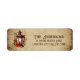 Schöne Retro-Vintage Illustration einer Laterne, die mit roten Blume und grünen Botanicalen auf einem Retro-Grunge-Hintergrund und Rahmen für einen alten oder Vintagen Look dekoriert ist. Passen Sie Ihren Familiennamen und Ihre Adresse an und personalisieren Sie diese.