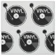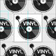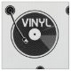 Eine Schwarz-Weiß-Vektor-Illustration einer Vinyl-LP, Aufnahme auf einer Turntable oder Plattenspieler. Die Platte hat Vinyl darauf geschrieben.