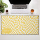 Steigen Sie mit dieser modernen Wavy Checkerboard Muster Personalisierte Schreibtischmatte auf. Diese Matte präsentiert eine spielerische Drehung auf einem klassischen Schachbrett, mit einem kugelförmigen Wellenmuster in Gelb- und Cremetönen zum Leben erweckt. Das personalisierte Feature bietet eine zusätzliche Touch an Individualität und macht Ihren Arbeitsbereich zu einem echten Zuhause. Sein Design verbindet mühelos eine moderne Ästhetik mit einer Touch von Launen, die jeden Schreibtisch in ein Statement-Stück verwandelt. Ideal für den persönlichen Gebrauch oder als einzigartiges Geschenk ist diese Tischmatte eine hervorragende Fusion von Spaß und Funktionalität. Personalisieren Sie dieses benutzerdefinierte Design mit Ihrem eigenen Namen.