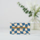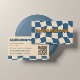 Retro Wavy Checkerboard Funky Blue Beige Visitenkarte