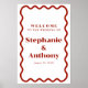 Mit diesem Retro 1950er Wavy Edge Dark Red Poster Design machen Sie auf Ihrer Hochzeit eine kühne und elegante Aussage. Der knallige, weiße Hintergrund ist durch einen kühnen, dunkelroten Flügelrahmen wunderschön gerahmt, was den zeitlosen Charme der 1950er Jahre einnimmt. Braut- und Bräutigam-Namen und Hochzeitsdatum werden elegant in einem koordinierenden dunkelroten Schriftart angezeigt, wodurch eine persönliche und raffinierte Touch entsteht. Dieses Vintag inspirierte Design ist perfekt für Begrüßungsschilder, Sitzkarten oder dekorative Vorführungen geeignet und verleiht Ihrem Hochzeitsdekor ein klassisches und stilvolles Ambiente.