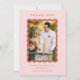 Eine trendige Hochzeitskarte mit einem Foto in Terrakotta, einem gewellten Rahmen auf einem rot-rosa Hintergrund und Terracotta. Fügen Sie der Rückseite eine persönliche Nachricht hinzu.