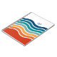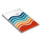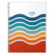 Mit seinem farbenprächtigen sportlichen Aussehen und dem zeitlosen Retro-Ambiente strahlt dieses helle Muster aus gewellten Streifen in Rot, Orange, Türkis und Blau auf weißem Hintergrund eine fröhliche Aussicht aus. Eine Textvorlage wird zur Personalisierung mit Ihren Monogramm-Initialen oder einem anderen gewünschten Text hinzugefügt. Holen Sie sich dieses angepasste Notebook für Schule, Zuhause oder Büro.