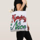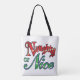 Schöne Tote-Taschen im Überdruck! Erhältlich in zwei Stilen und zwei Größen! Vintage Illustration Frohe Weihnachtsfeiertage Cartoon Clip Art Text Design. Die Worte "Naughty oder Nice" in rot und grün Weihnachtsfarbbriefen geschrieben.