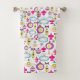 Retro Weihnachten verziert Muster-Feiertags-Badezimmer-Tuch-Set. Washcloth, Handtuch und Körpertuch im Retro Feiertagsmuster des Spaßes. Rosa, lila, grüne und blaue Verzierungen auf einem weißen Hintergrund. www.SamAnnDesigns.com