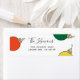 Modernes Design mit 3 Retro-Ornamenten in Rot, Grün und Gelb, die eine individuelle Rücksendeadresse umgeben. Entwurf von Shelby Allison und Foto von Joseph Gonzalez zu Unsplash