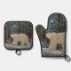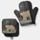 Retro-Weißbär boho Winterwald Ofenhandschuh & Topflappen-Set