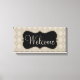 Dieses stilvolle Willkommensschild ist in einer klassisch beigen Raute gehalten. Das Bild stammt aus der Originalkunst.