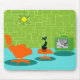 Es wird gesagt, dass Hunde Eigentümer haben und Katzen Personal haben. Das katzenartige auf dieser Retro Weltraumzeitalter-Miezekatze Mousepad konnte nicht mehr zustimmen! Die Sechzigerjahre Art, unbedeutende KunstAusrüstungsbeschreibungen eine glatte, schwarze Katze in einem modernen Wohnzimmer der Mitte des Jahrhunderts. Der hoch entwickelte Raum kennzeichnet vorstehend ein Grün, Steinwand. Der Teppich ist Aqua mit aquamarinen Schatten. Die Einrichtungsgegenstände des Raumes schließen ein Gelb, helle eine Zahl Sputnik, einen orange Klubsessel mit zusammenpassendem Schemel und ein grünes Fernsehen mit den Kaninchenohren mit ein. Die glückliche schwarze Katze kann gesehen werden hockte auf dem Schemel vor dem Fernsehen. Seine Lieblingsshow ist eingeschaltet! Auf dem Fernsehschirm können wir eine Schwarzweiss--, klassische Fernsehfamilie sehen, die alle Probleme des Lebens in einer halbstündigen Show löst. Dieser Entwurf ist purrrfect, wenn wir so selbst sagen.