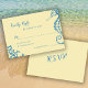 Summer ocean beach destination citrus yellow and blue wedding response RSVP featuring hand drawn seahorse and corals and a chic funky playful whimsical calligraphy script.