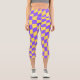Retro Y2K Checkerboard Capri Leggings , Funky Trendy lila & gelb Checkerboard Leggings