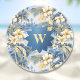 Retro Yellow Blue Floral n Tropical Palms Initial Getränkeuntersetzer